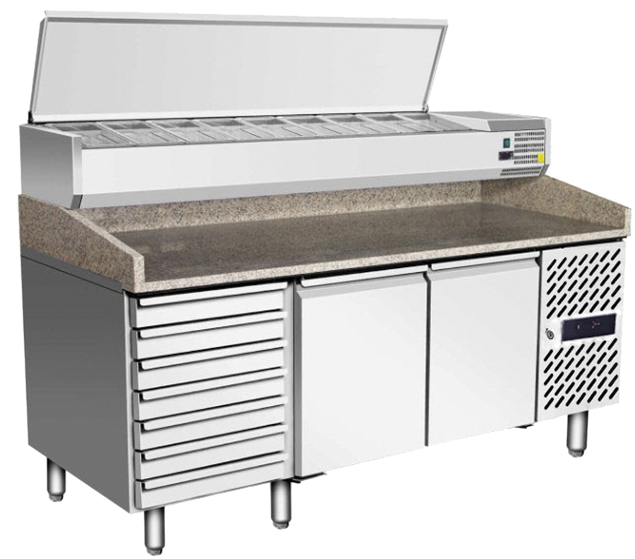 Meuble Réfrigéré à Pizzas 2 Portes et Tiroirs Neutres